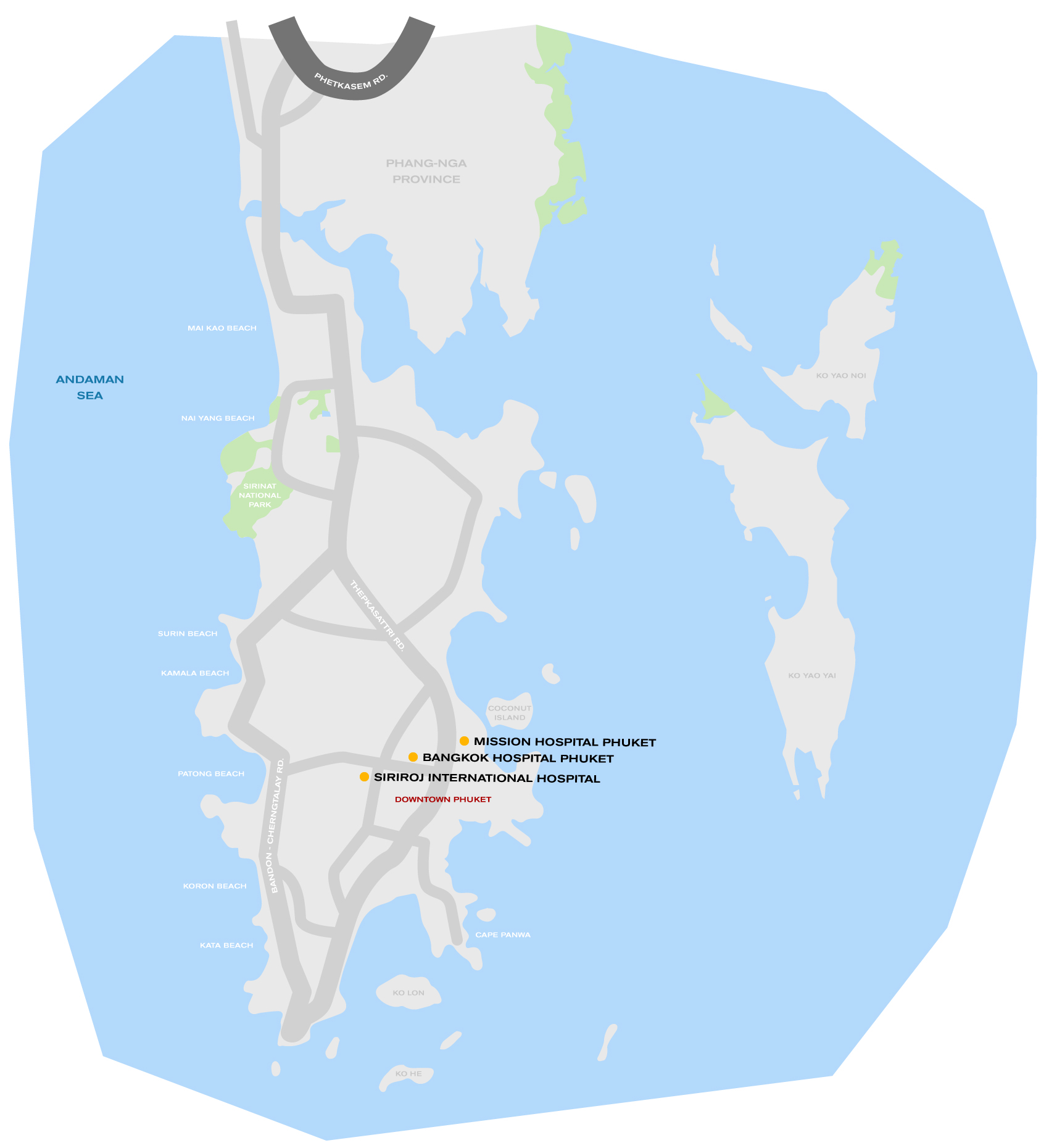 普吉國際醫院以提供優質服務,充分滿足外國遊客和本地居民的需求而享有盛譽。曼谷國際醫院(普吉分院)和Mission醫院也因其高水準的醫療服務而聞名海外。