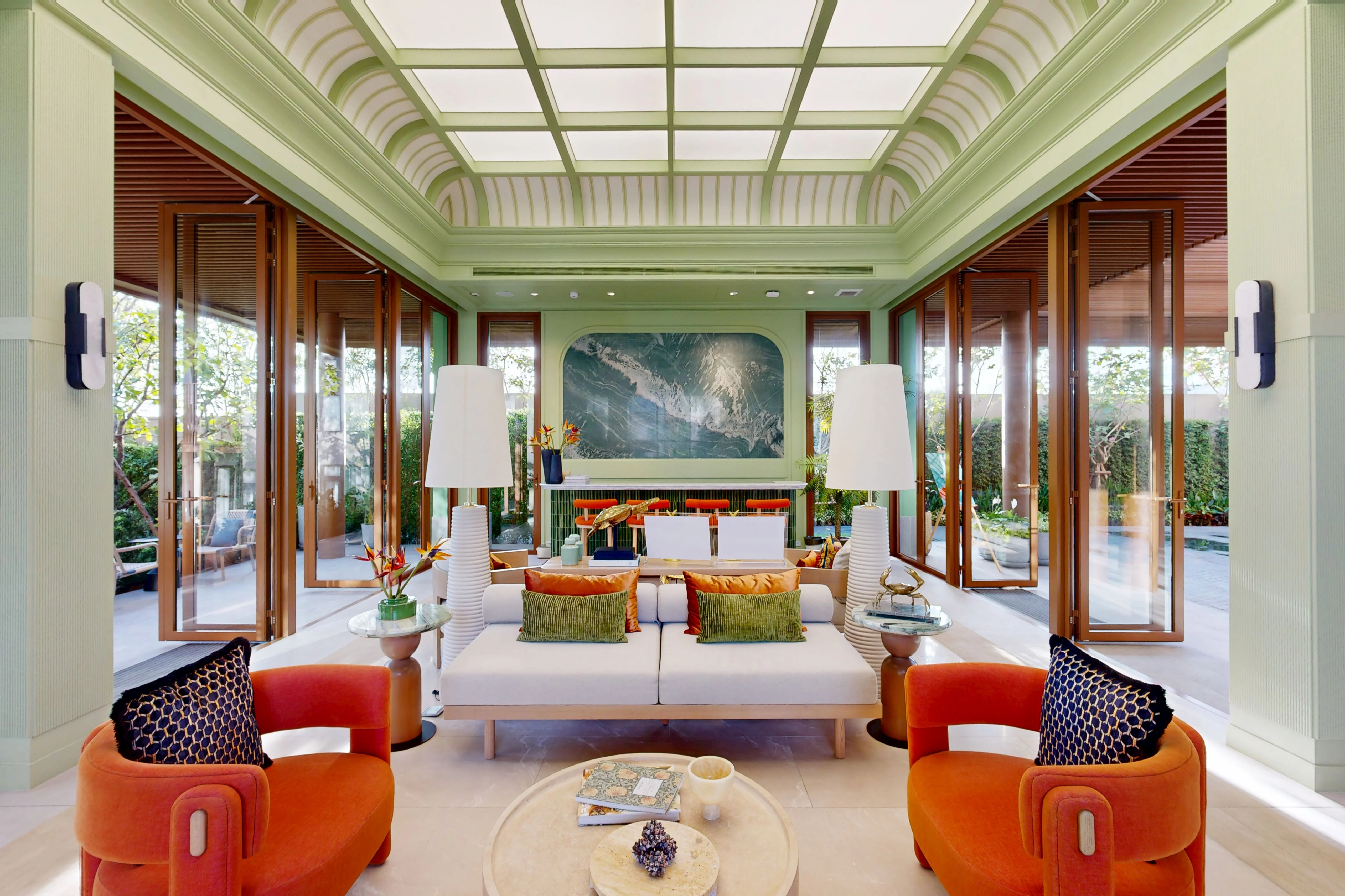 半戶外設計精心延展視野,讓您俯瞰泳池與熱帶美景。天花板的優雅曲線巧妙引入自然光線,帶來溫柔的光影流動,讓您徹底沉浸於大自然的懷抱,享受與自然共生的悠然生活。