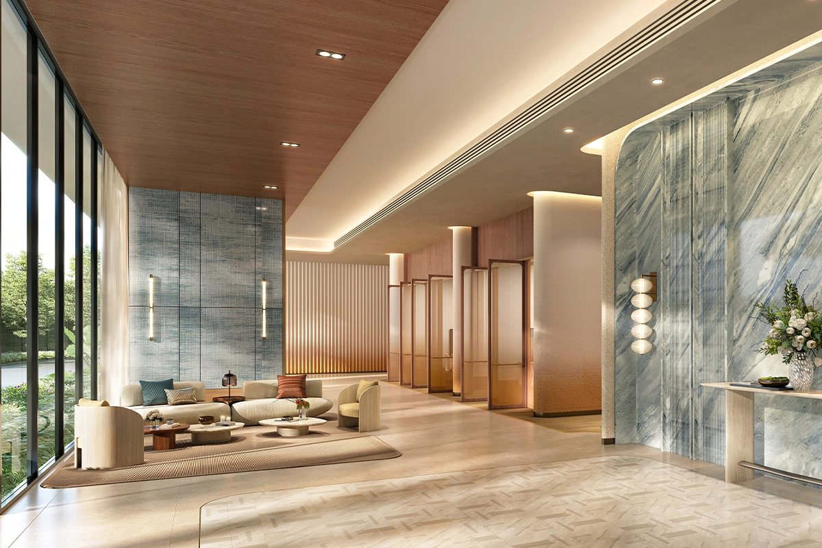 位於 45 樓的空中酒廊,坐擁壯闊的全景視野。空間以溫馨舒適的氛圍設計,適合多元活動使用,並無縫連結寵物友善的屋頂花園,讓住戶與心愛的寵物每天都能共享美好時光。