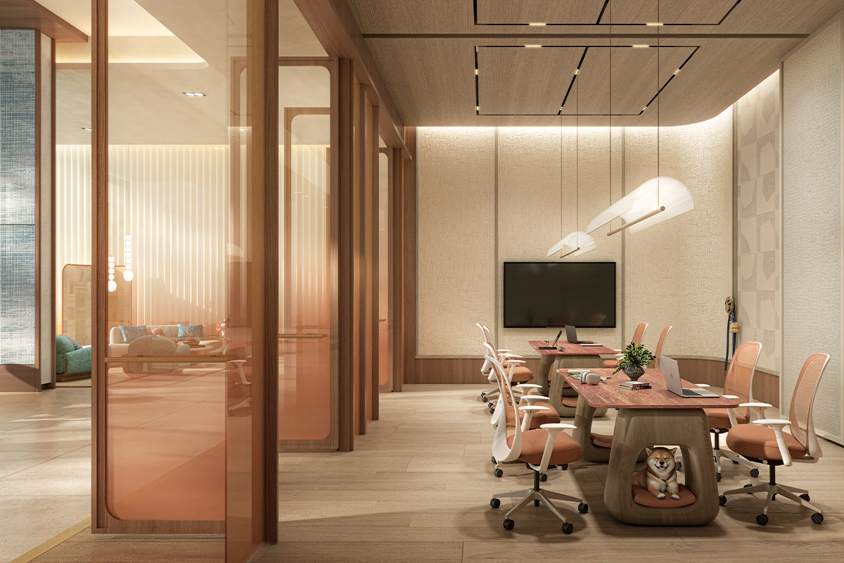 會議室配備符合人體工學的座椅,提升舒適度與身心健康。精心規劃的寵物友善空間,讓住戶可攜帶寵物一同使用。為每一次會議營造輕鬆自在、舒適愉悅的氛圍。