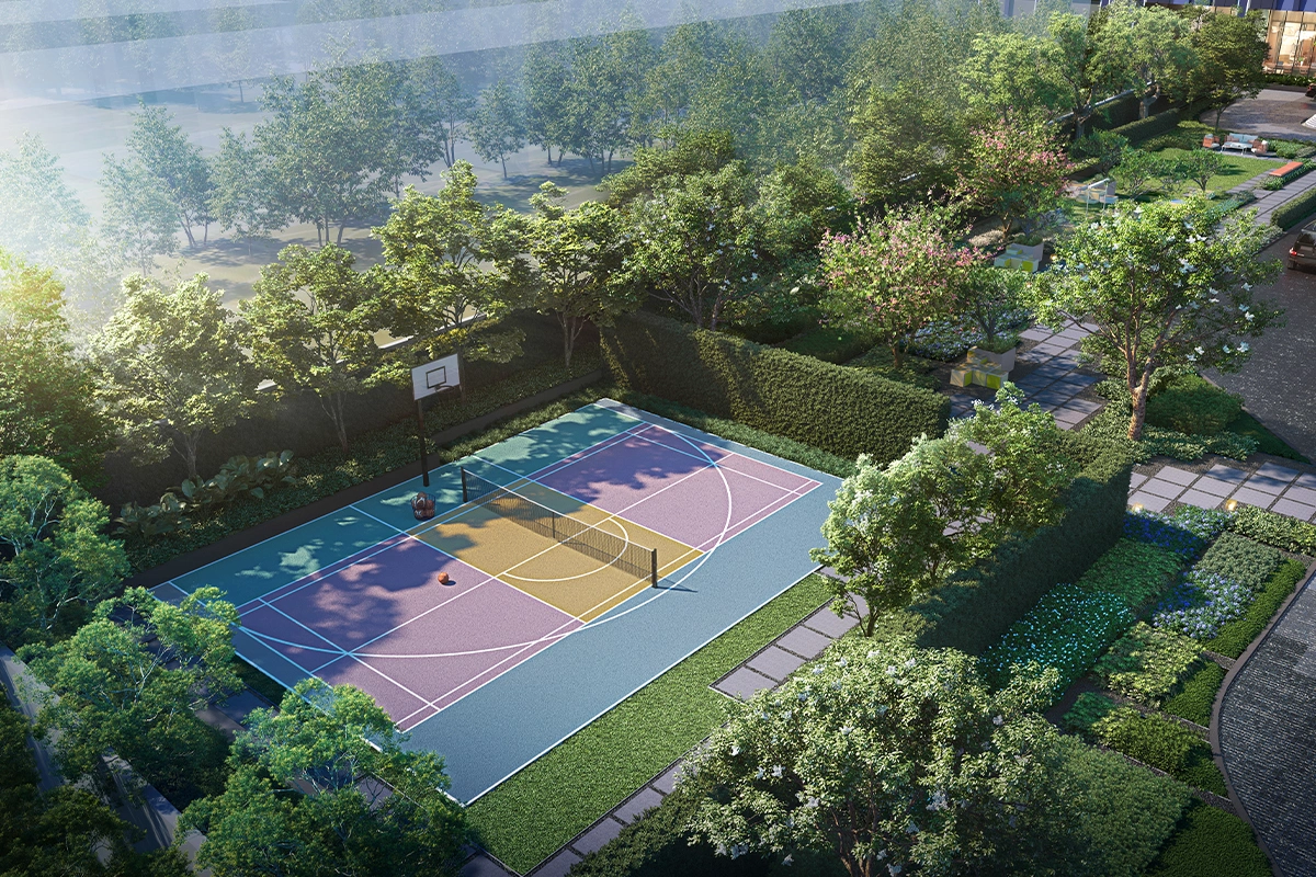 靈活多變的多功能運動場,可依需求轉換為各類運動空間,包括籃球、匹克球、羽毛球或藤球等活動,完美滿足充滿活力的生活方式。