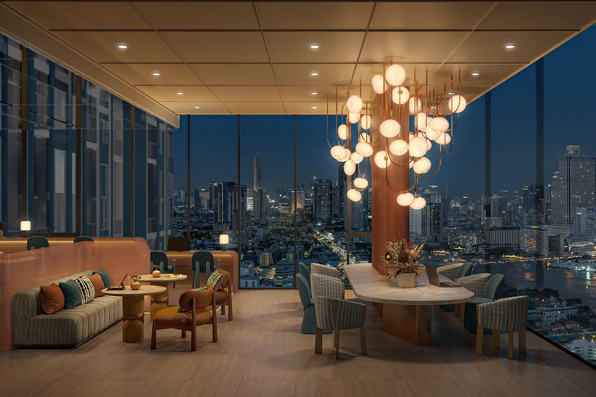 打造一處順應生活節奏的工作空間,在輕鬆自在與活力之間自然流動,如同河水般從容延展。大面玻璃引入開闊的湄南河與城市景觀,無論專注工作或稍作休息、放鬆雙眼,靈感始終近在眼前。