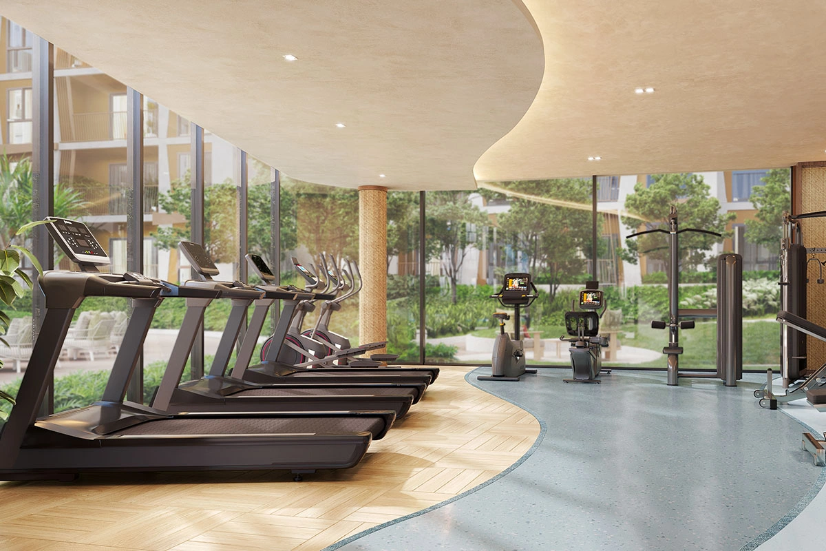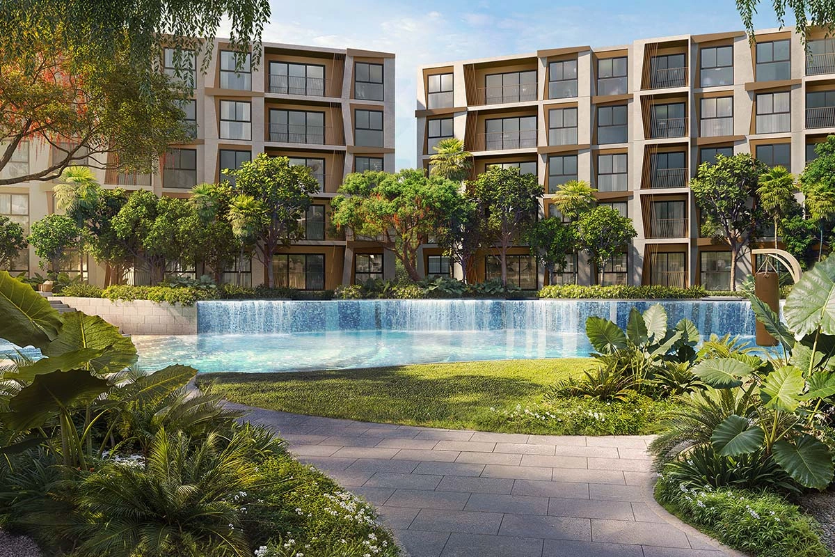 Plunge into a sprawling swimming pool where art and design come together. Patterns crisscross the pool floor, reflecting the beauty of the natural surroundings and inviting you to fully appreciate every moment of relaxation Enjoy twice the pleasure with a dual-level swimming pool, where leisurely swimming comes with 360-degree views of the communal gardens.