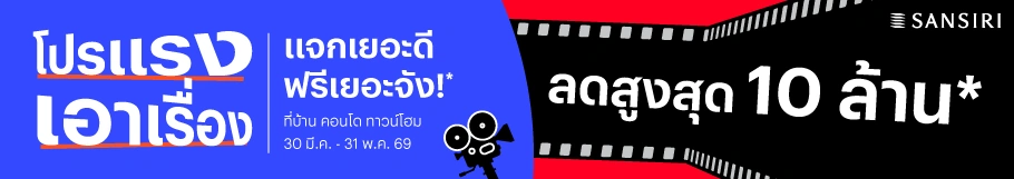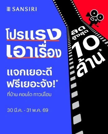 แรงเอาเรื่อง แจกเยอะดี ฟรีเยอะจัง ลดสูงสุด 10 ล้าน* ที่บ้าน คอนโด ทาวน์โฮม แสนสิริ ตั้งแต่ 30 มี.ค. - 31 พ.ค. 69