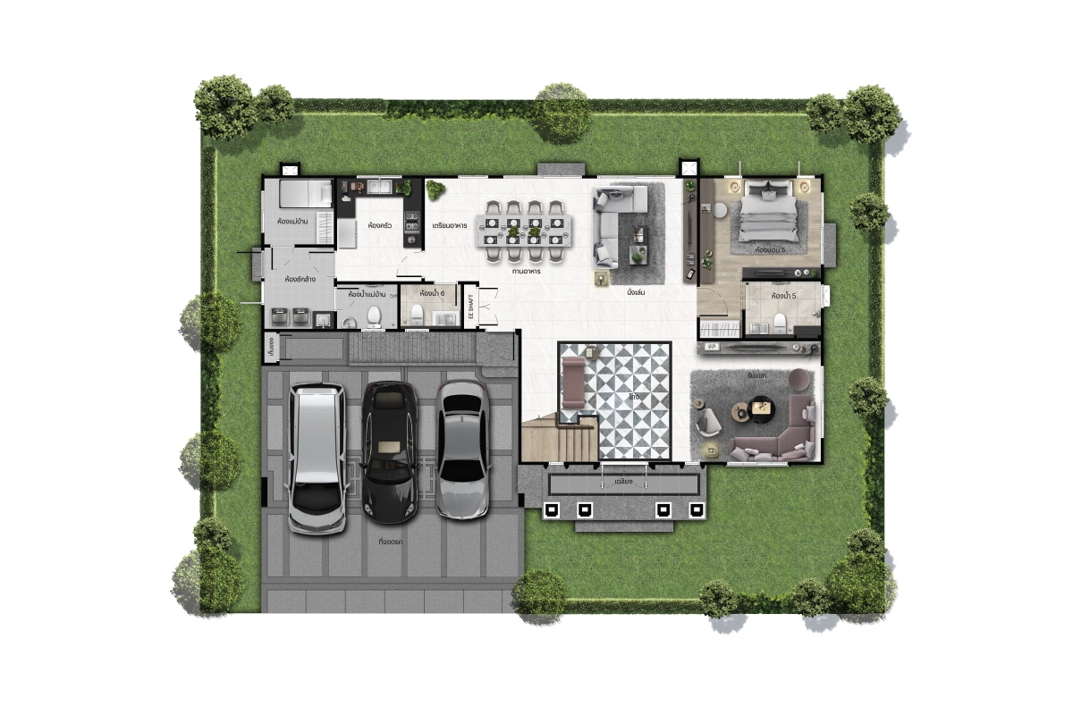 พื้นที่ใช้สอย 390 ตร.ม. ที่ดิน 130 ตร.วา