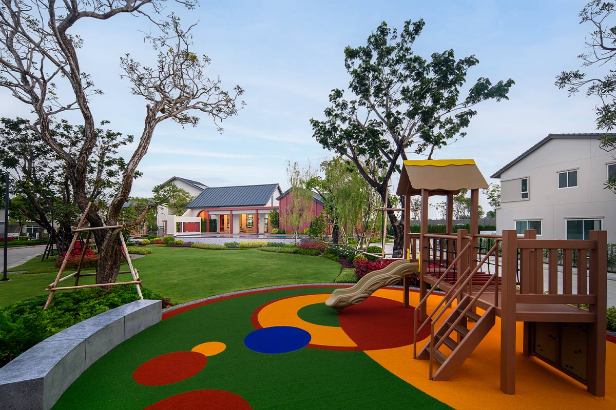 พักผ่อนท่ามกลางบรรยากาศร่มรื่น กับส่วนกลางขนาดใหญ่ภายในโครงการ