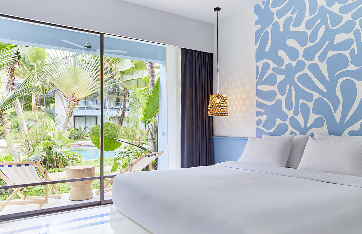 โทนสีขาวฟ้าครีม วิวสระว่ายน้ำ