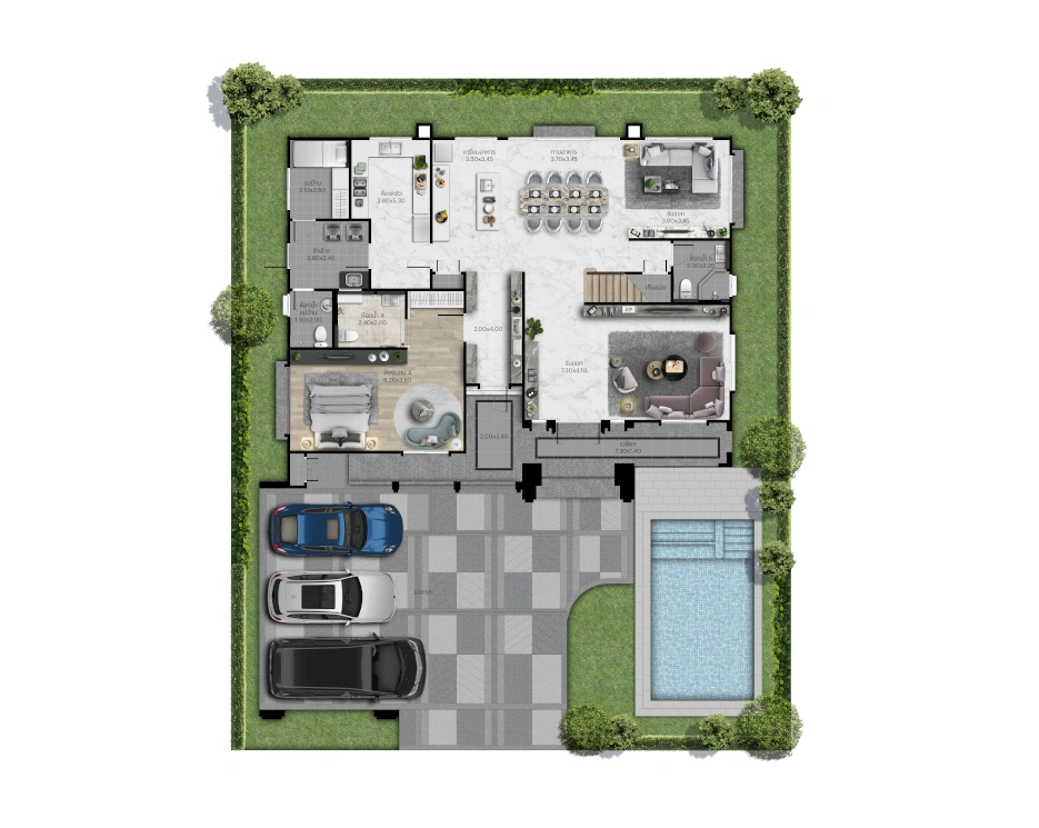 พื้นที่ใช้สอย : 425 ตร.ม.